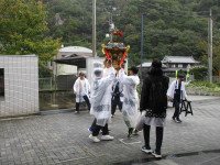あいにくの雨模様でしたが、子ども神輿が学校に来て、力強くかきあげました。